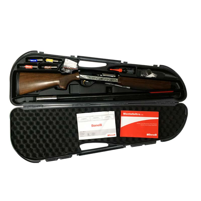 La escopeta semiautomática Duca di Montefeltro es totalmente fiable, con acabados de calidad superior y detalles delicados, con marcado antideslizamiento y el gatillo dorado. Ingeniosa simplicidad mecánica y facilidad de mantenimiento hacen de la escopeta Duca di Montefeltro una de las armas semiautomáticas Benelli más conocidas del mercado de línea esbelta, diseño ergonómico que otorga equilibrio y comodidad al encare.