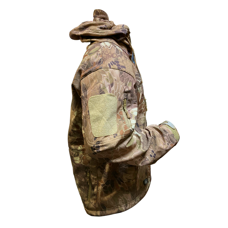 Chaqueta de diseño camuflajeado con interior micropolar, impermeable y respirable, con cierres waterproof.
