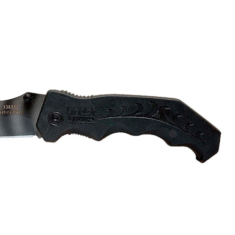 Cualquiera que conozca la importancia de la optimización del equilibrio y el agarre de un Linder, no puede ignorar esta serie de navajas. La hoja es de acero inoxidable, con diseño camo y su empuñadura es de elastómero ergonómica y posee un peso de 112g.