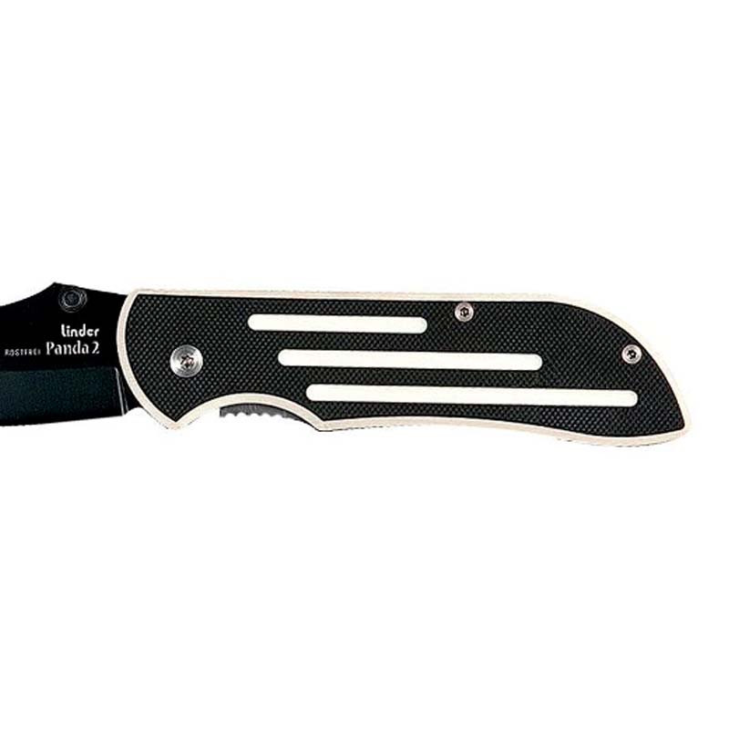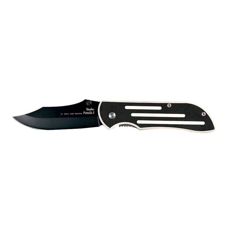 Lo colorido de esta navaja se limita al blanco y negro. Y la combinación de estos dos tonos realmente se pueden ver, posee  hoja de acero inoxidable 420 recubierta de negro y tiene un peso de 132 g.