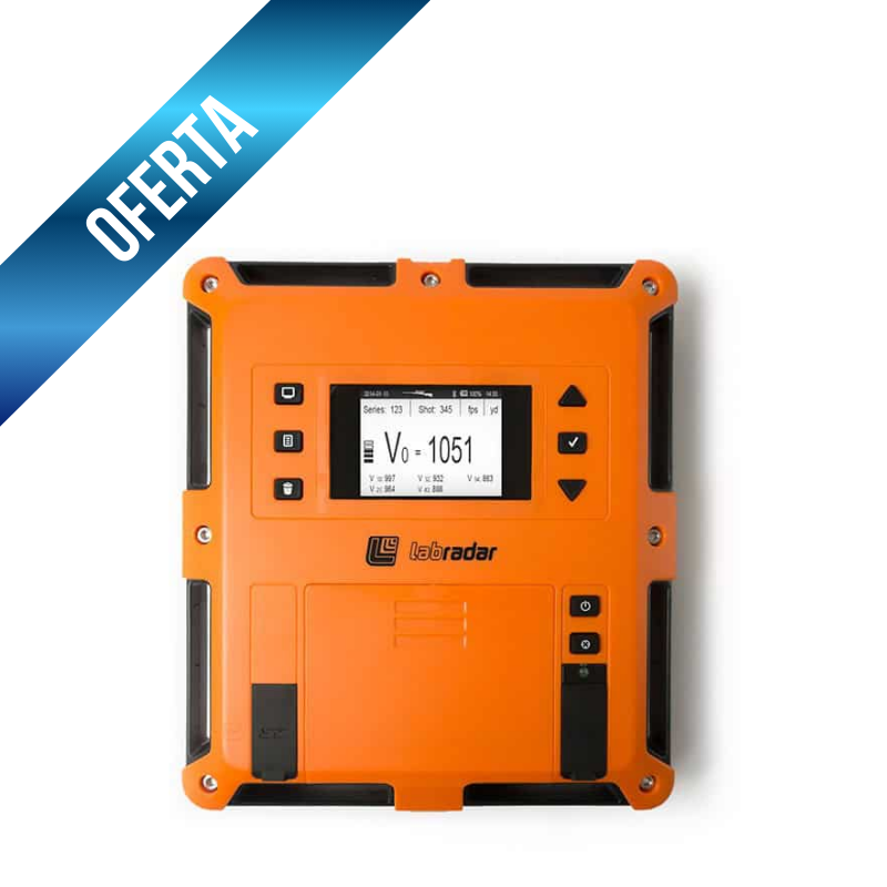 Este increíble cronógrafo mide continuamente la velocidad de la munición de su arma de fuego, de aire, flechas, entre otros. Mide velocidades de hasta 3900 f.p.s. con una precisión del 0,1 % utilizando tan solo seis pilas AA. Labradar no depende de ninguna fuente de luz y se puede utilizar tanto en interior como en exterior. Se coloca al costado del arma, no en la parte inferior en donde otros sistemas son propensos a sufrir daños. Con los disparos individuales muestran en su pantalla incorporada las velocidades y hasta cinco distancias adicionales junto con la energía cinética en cada distancia. Los datos se pueden descargar a través de USB o tarjeta SD (no incluída), además posee una calculadora de factor de potencia IPSC