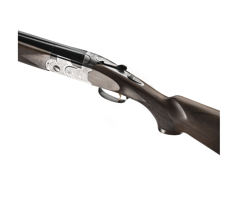 Esta escopeta posee una bascula de construcción tipo monoblock, con cañones fabricados en aceros de triple aleación forjados en frio y martelados rotacionalmente, empavonado negro mate con banda de 6 x 6mm, tiene doble sistema de seguridad cónico y auto-ajustable, único en el mundo. Alma y recamara cromadas, seguro selectivo de bloquea manual. Guardamanos tipo «schnabel», en madera de nogal de nivel superior, cantonera de goma ambidiestra. Monogatillo. Selector de cañón. Mira delantera metálica.