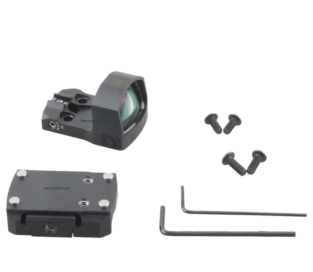 incluye: Cubierta de lente de goma, llaves hexagonales, tornillos y paño de limpieza.