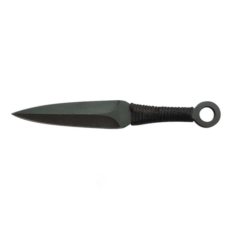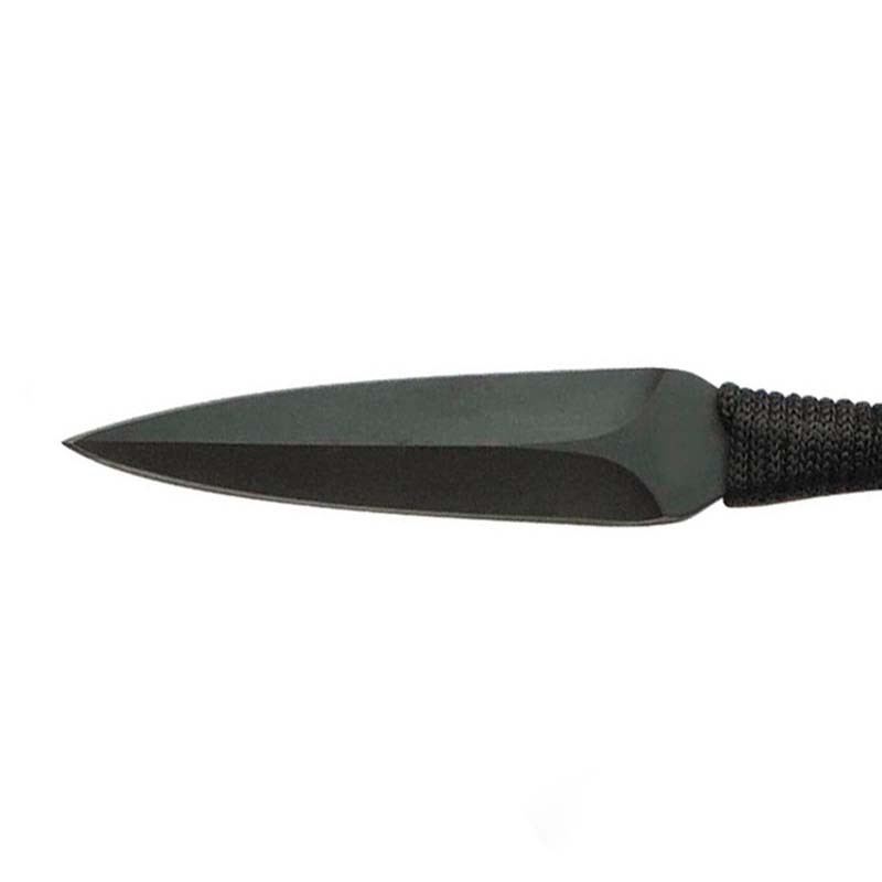 El cuchillo lanzamiento Nakata posee una hoja de acero inoxidable 420, y empuñadura revestido en paracord antideslizante.
