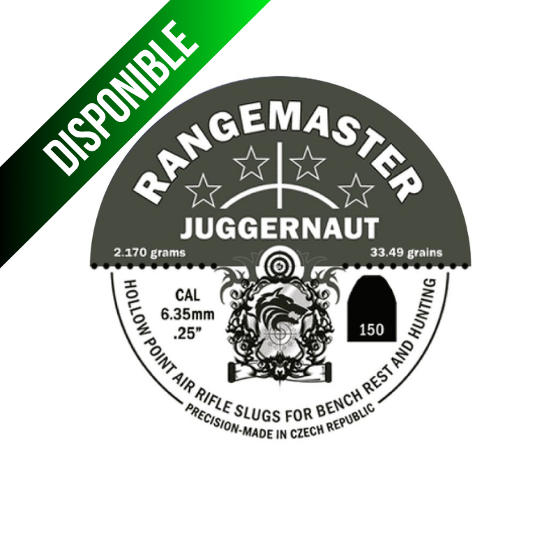 El Juggernaut es la solución Rangemasters para disparos con armas de aire de largo alcance, que produce una precisión de más de 100 metros, adecuado para tiro en general, banco de descanso y caza a larga distancia.