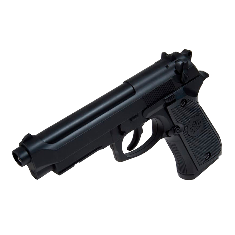 Esta pistola esta hecha el material sintético negro, tiene una longitud de 220 mm, un peso de 450 g.