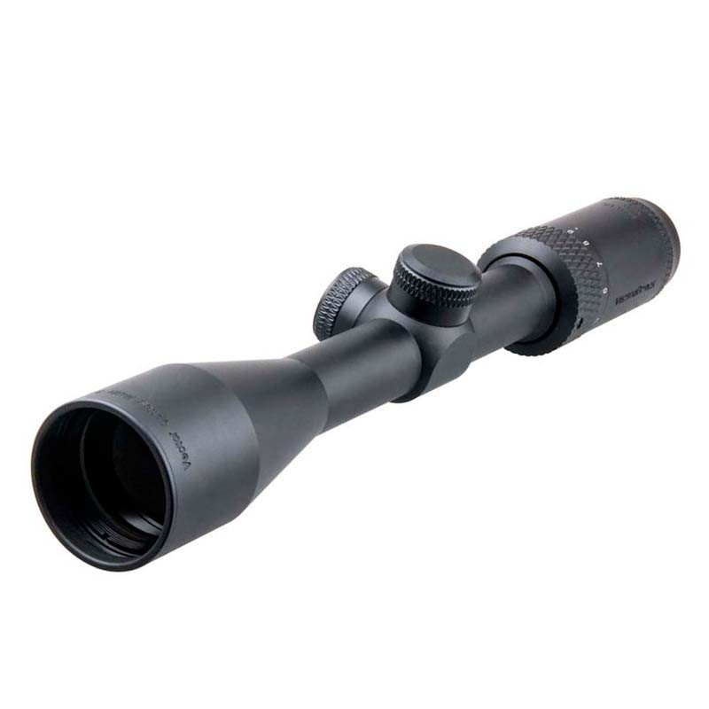 Aumento: 3-9, diámetro de la lente objetivo: 1.575 in, diámetro del tubo: 1.000 in (1″), valor del clic de ajuste: 1/4 MOA, reticle: dúplex, Iluminación: ninguna, diámetro de la lente ocular: 1.339 in, longitud ocular: 2.205 in, campo de visión: 6.6-2.2° a 100 yardas, alivio ocular: 4.134 – 3.780 in, Pupilo de salida: 0.524 – 0.173 in, ajuste paralelo: 100 yardas, rango de elevación: 60 MOA, rango de viento: 60 MOA, revestimiento de la lente: totalmente multicapa, longitud: 12.008 in, peso: 13.76 oz,  acabado: mate, distancia entre la parte objetivo y la torreta central: 2.008 in, longitud de la parte central de la torreta: 1.299 in, distancia entre la parte central de la torreta al anillo de potencia: 1.850 in, compensación de dioptrías desde el ocular de enfoque rápido (+2.0 a -2.0).